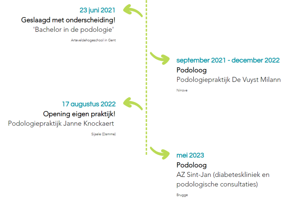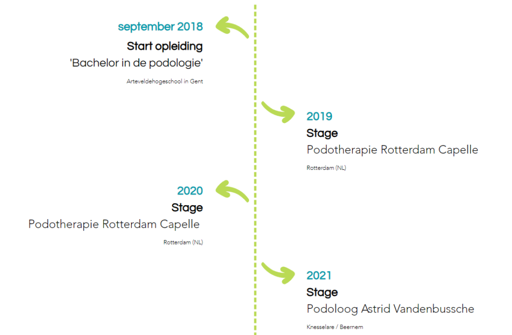 Ik ben Janne, een ambitieuze podoloog die de opleiding ‘Bachelor in de podologie’ startte in 2018 aan de Arteveldehogeschool in Gent. Na 3 jaar studeerde ik af met onderscheiding.